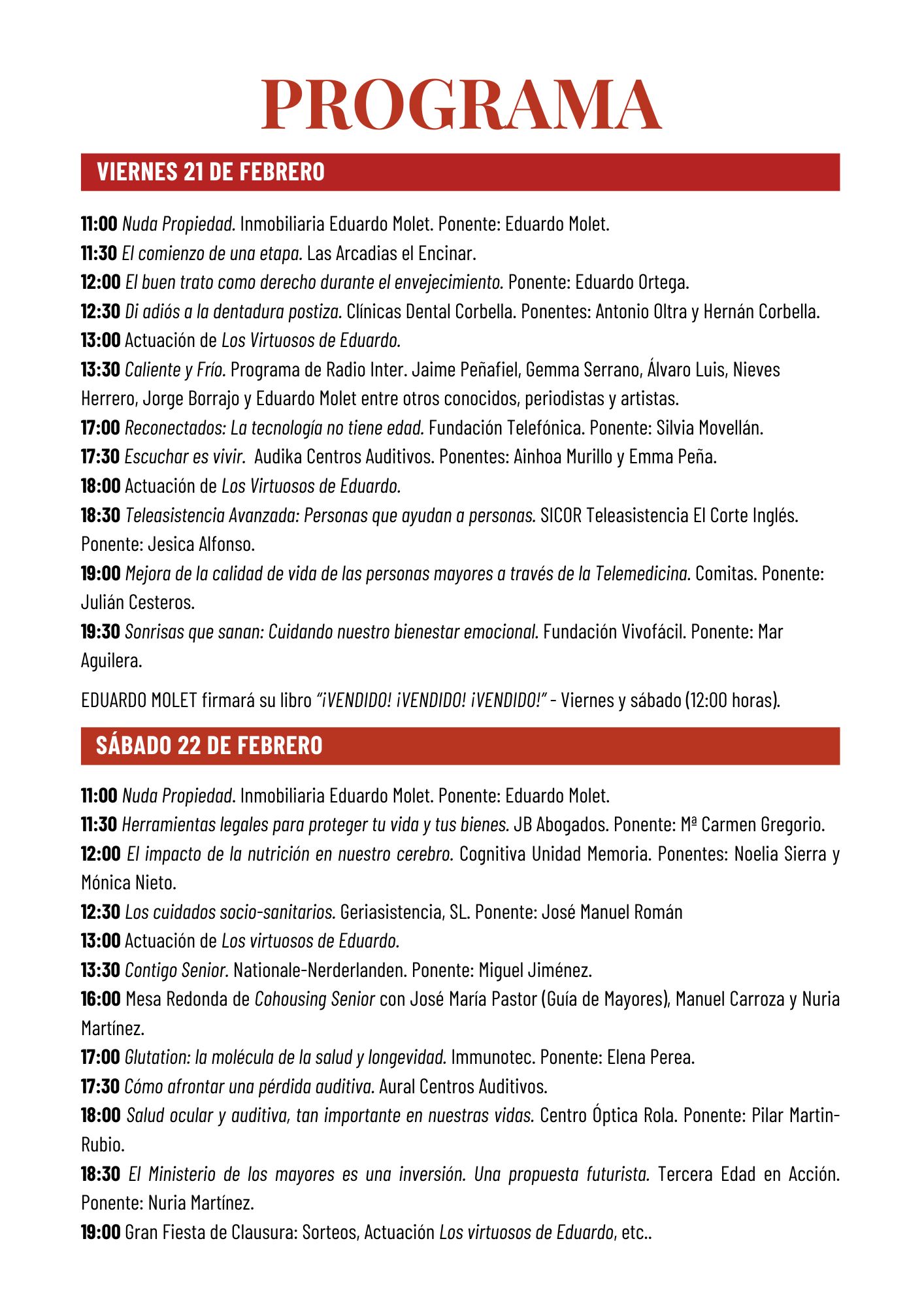 No importa la edad que tengas, eres bienvenido a este espacio de información y compartir. A continuación, encontrarás adjunto el programa de este año para su descarga. También te dejamos toda la información en esta misma página para que no tengas que buscar el archivo el día que lo vayas a consultar.